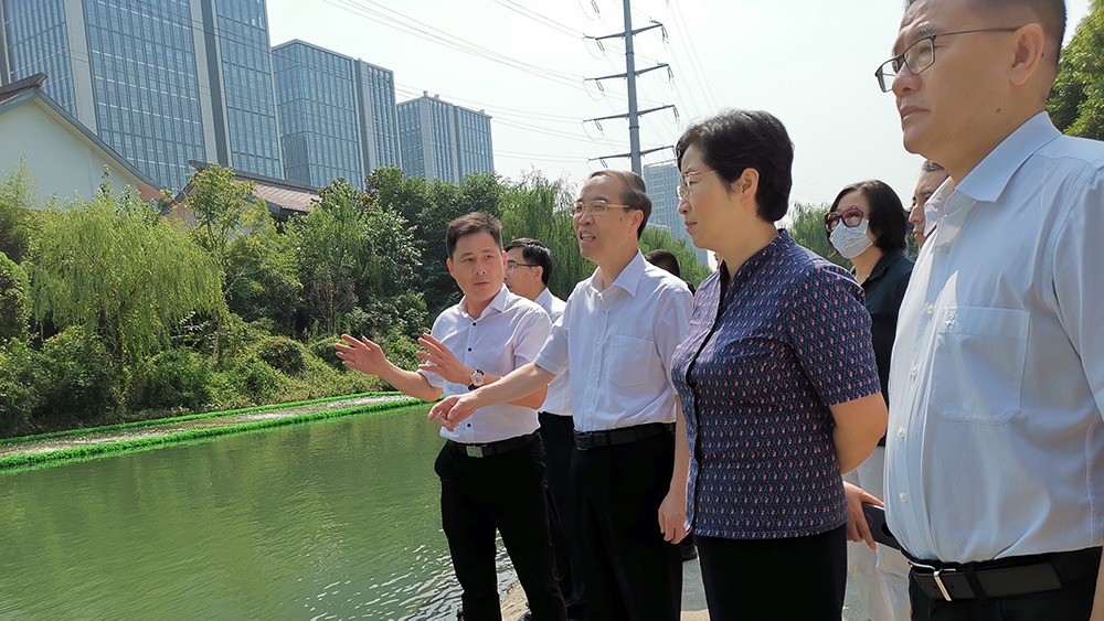 圍繞開展《提升我市河道水生態(tài)保護(hù)水平的若干建議》重點(diǎn)提案辦理協(xié)商,2021年9月18日,杭州市政協(xié)主席潘家瑋率杭州市政協(xié)代表團(tuán),赴我公司拱墅區(qū)紅旗河片區(qū)生物鏈治水項(xiàng)目督查。杭州市拱墅區(qū)區(qū)委書記陳瑾陪同。